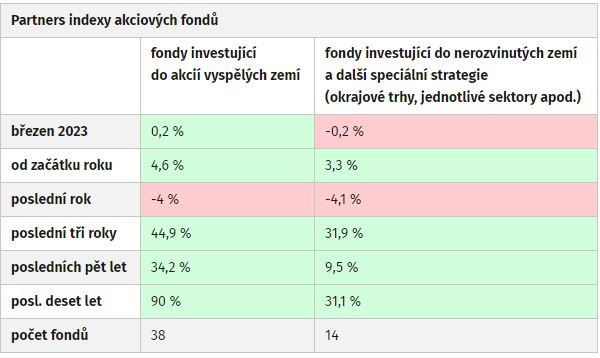 Vývoj podílových fondů pravidelně hodnotí Martin Mašát, investiční stratég skupiny Partners. Jak si vedly v březnu, jak za posledních dvanáct měsíců a jaká je jejich dlouhodobá výkonnost?